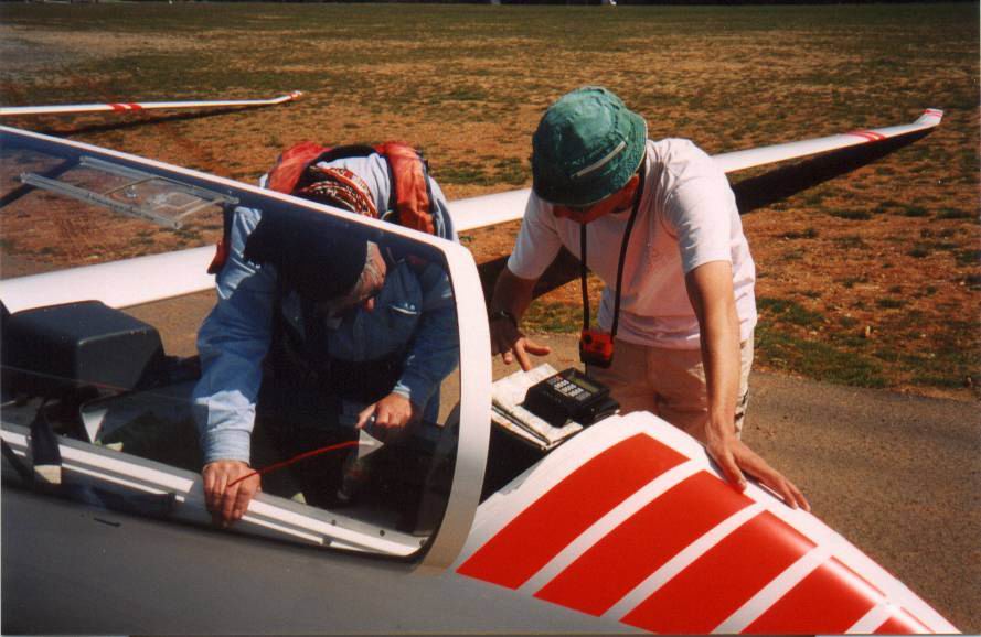 Matthieu war besorgt, dass jeder von uns jeden Tag fliegen konnte. Zweimal hatte er für jeden von uns Platz im Nimbus, je einmal organisierte er einen Einsitzer des Zentrums. Man wusste, dass wir andere Jahre mit einer LS6 erschienen. (Wir wurden prompt gefragt, ob wir zwei eine LS8 gekauft hätten! Man nimmt ohne weiteres an, die Schweizer könnten sich eigene Flugzeuge leisten.) So erreichte er, dass Sämi am Donnerstag mit einer wunderbaren LS6 18m in die Lüfte gehen konnte. Am Freitag gab es dann für mich die 17,5m-Version desselben Typs. Mit diesen Klappenflugzeugen waren wir im siebten Himmel. Kreisen, steigen, vorfliegen, wie könnte es schöner sein?