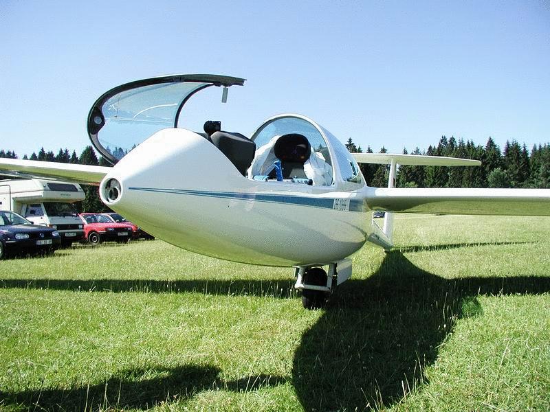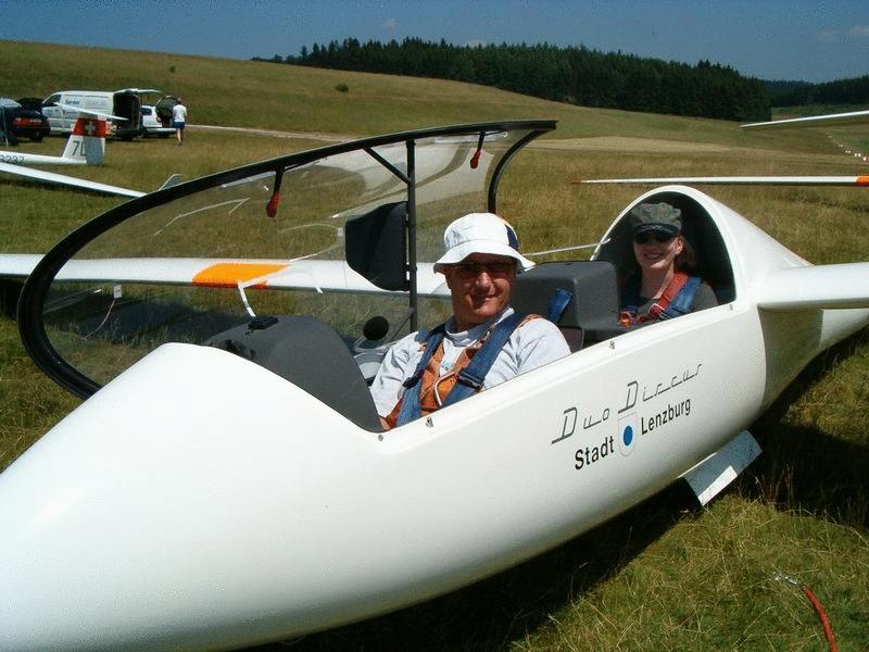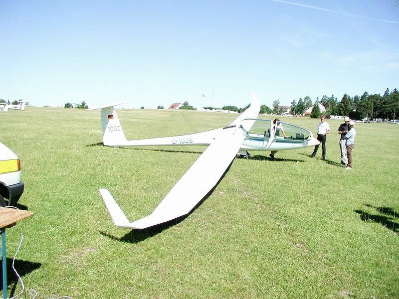 neuen, hochbeinigen Doppelsitzer DG 1000 zu bewundern und eine Sitzprobe vorzunehemen.
