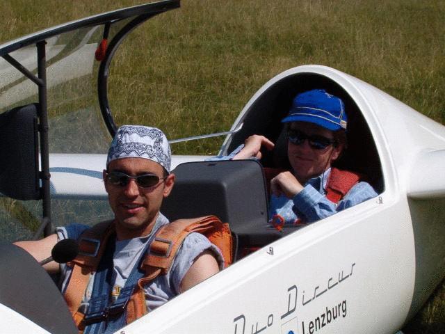 So starteten Jürg und ich mit dem Duo zum ersten Flug auf der Klippe zur