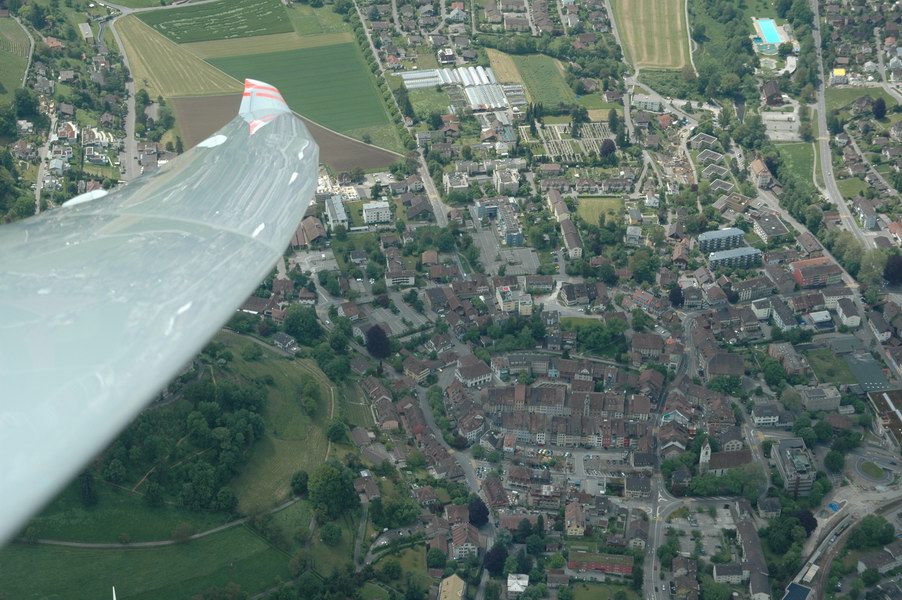 Es war schon spät und in Richtung Zugerberg (der letzten Wende) schattete eine grosse Abdeckung alles ab. Ich fand nach einigen Schleifen einen mässigen Aufwind etwas östlich der Spitze des Speers. Hier wehte ein kräftiger Westwind, der diese Leethermik turbulent machte. Ich verlor den Aufwind mehrere Male und fand ihn versetzt wieder. Ich blieb hartnäcknig, denn ich hatte mir jetzt in den Kopf gesetzt, die Aufgabe noch zu erfüllen. Auf 2600m hatte ich die Basis erreicht und flog vorsichtig Richtung Westen vor. Im Luv des Speers erfasste mich dann plötzlich ein sanftes Steigen von einem knappen Meter. Ich hatte eine Westwindwelle erwischt, in der ich bis auf 2850m weitersteigen konnte. Vor mir lagen aber noch beinahe einhundert Kilometer im Gegenwind. Eigentlich konnte es mit dieser Höhe nicht bis nach Hause reichen. Doch mir blieb nichts anderes übrig, als mich vorsichtig auf einen langen Gleitflug zu begeben. Er sollte rund eine Stunde dauern. Es gelang mir dabei eine sehr gute tragende Linie zu finden, mit der ich meinen Gleitflug strecken konnte. Ich wendete am Zugerberg in gut 1800m Höhe. Diese Höhe reichte dann genau noch bis ins Birrfeld. Ich war zwar über eine Stunde langsamer als meine Konkurrenten und verlor an diesem Tag einige Ränge. Doch die schöne und spannende Heimkehr versöhnte mich mit diesem verpatzten Tag.