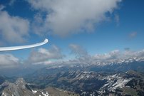 Nach dem Col du Pillon hatte ich grosse Mühe den Aufwind zu finden, den ich nun brauchte, um ins Wallis wechseln zu können. Zum Glück hatte ich aus meinem Fehler bei Schruns gelernt und nahm mir nun genügend Zeit die notwendige Höhe zu machen. Die Geduld hatte sich gelohnt. Ich fand im Wallis ausgezeichnete Bedingungen vor. Es war zwar blau, aber die Steigwerte lagen bei rund 3m/s und ich hatte durch forsches Vorfliegen die Zeit, die ich nach dem Col du Pillon verloren hatte, schon bald wieder aufgeholt. Im Obergoms wurden die Bedingungen aber schwächer und ich schob mich in nur 2600m Höhe über den Furkapass ins Becken von Andermatt. Doch damit kam ich vom Regen in die Traufe. Die Luft war hier faul und ich sank bis unter 2200m. Einzig am Gemsstock brachte ein schmales Aufwindband entlang der Seilbahn 0,8m/s Steigen. Die ganze Konkurrenz musste durch dieses Nadelöhr. Zeitweise kreisten über zwanzig Flugzeuge in diesem schwachen Aufwind eng am Hang mit dem Seilbahnkabel in der Nähe. Mir war nicht wohl bei der Sache und ich war froh als ich weiter Richtung Osten an den Hang des Piz Badus wechseln konnte. Hier war das Steigen zuverlässiger und stärker. Schon bald war ich wieder auf 3200m und flog ins Vorderrheintal ein.
