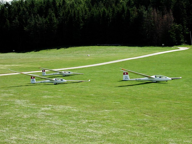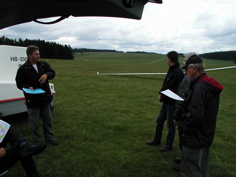 Ueber Nacht hat der Wind seine Richtung geändert. Wir überlegen uns kurz, ob wir auch noch die neue Startrichtung ausprobieren wollen, überlassen es aber unseren nördlichen Nachbarn, welche nach und nach den Platz in Besitz nahmen. Zu unserem Erstaunen waren ca. die Hälfte der Flugapparate mit Motoren (Selbststarter, Flautenschieber) ausgerüstet. Um die Mittagszeit verliessen wir das Hochplateau und dislozierten ins Birrfeld.