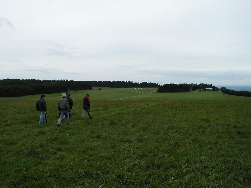 Erste Besichtigung des Fluggeländes: Bei einem Flugplatz stellt man sich ein ebenes Gelände vor. Weit gefehlt, kaum ein ebenes Stück Land und doch war es das Segelfluggelände der Baden-Württembergischen Segelflieger.