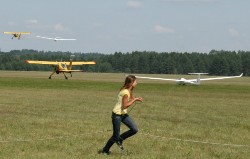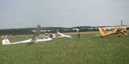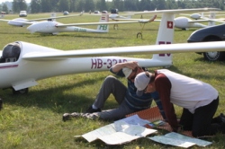 mj / 02.08.2007. Die Startlinie wurde von der mutigen Wettbewerbsleitung für die Standardklasse und die 20 m-Klasse um 14:00 Uhr geöffnet. "Pulkfliegen" im grossen Stil war das einzige Rezept, sich bei Nullschieber überhaupt in der Luft zu halten. So musste man sich bei 20 Stundenkilometer Gegenwind mit einer Abflughöhe von 800-1000 m begnügen und ständig mögliche Landefelder suchen. Nicht unbedingt eine einladende Übung. Bald wurde deutlich, das die Gesamtaufgabe nicht erfüllbar sein wird und beide Klassen trafen sich nach rund 15 km über dem südlich liegenden Flugplatz Alytus. Schon einige Kilometer vor dem Platz konnte man Dutzende von gestrandeten Flugzeugen ausmachen, die den Weg nach Alytus markierten. Einige Mutige kämpften sich weiter, mussten aber über der Stadt ebenfalls das Handtuch werfen. Tom Sütterlin und das Doppelsitzerteam Hächler/Jauslin entschieden sich für die Landung in Alytus und wählten den vermeintlich bequemeren Weg mit Rückschlepp. Matthias Dirk und das Team Reich/Ulrich konnten sich über der Stadt halten und schafften sogar die Abflughöhe zurück nach Pociunai. Eine das eine tolle Leistung, die einiges an Nerven abverlangte.